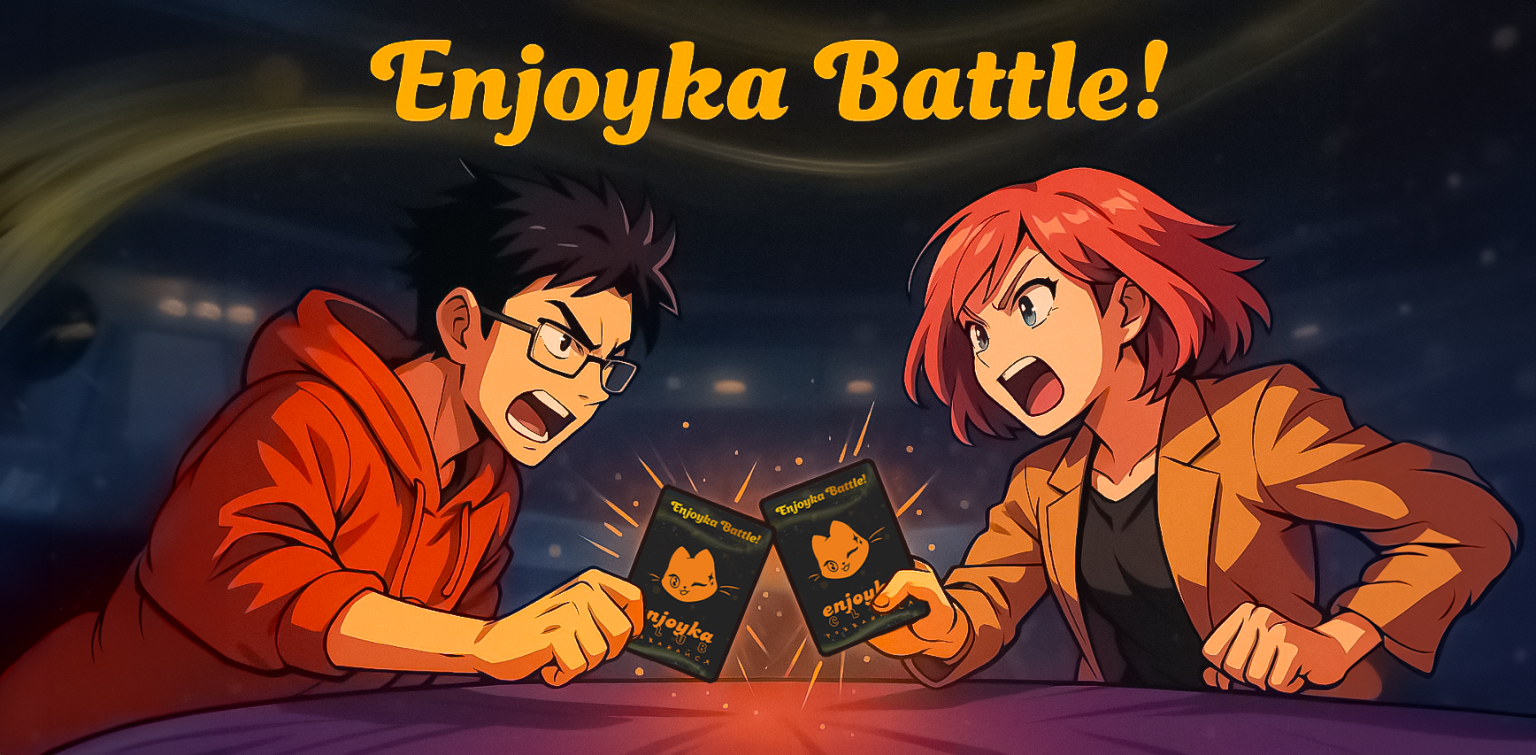 Enjoyka Battle — це більше, ніж просто настільна гра. Це арена енергії, емоцій та аніме-душі, створена спеціально для учасників клубу Enjoyka. Тут кожна картка — це частинка твоєї сили. А перемогу здобуває не лише найсильніший, а й той, хто вірить у свою карту.
