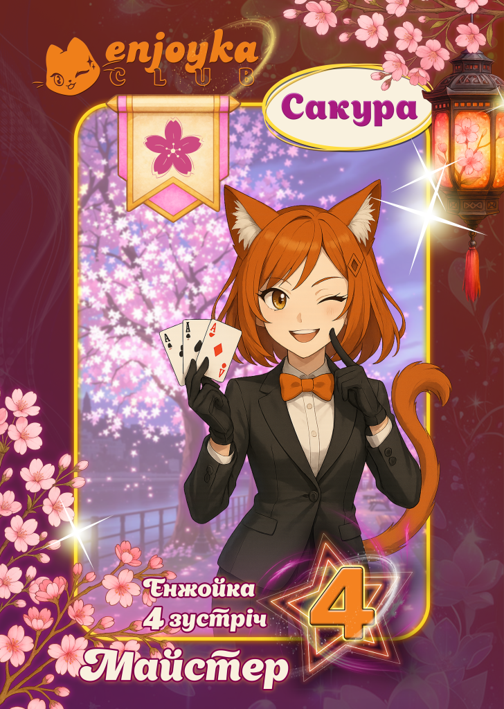 Це частина клубної культури Enjoyka — місце, де ми не просто дивимось аніме,а й живемо у ньому: збираємо власні колекції карток, беремо участь у турнірах, вигукуємо «ENJOYKA BATTLE!» і відчуваємо ту саму магію єдності.